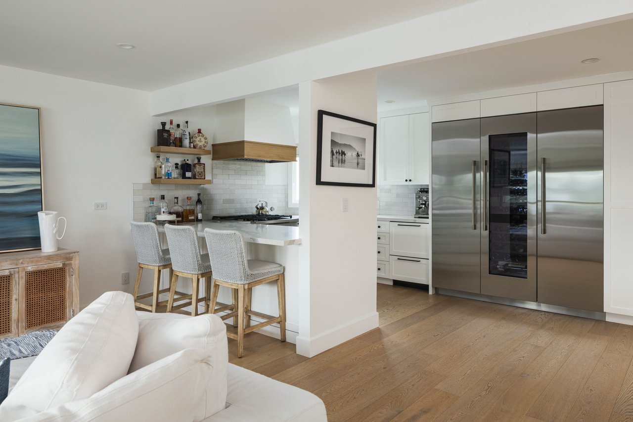 Set on a storybook corner of coveted Little Balboa Island, recently remodeled 1520 Abalone Place captures the rare magic that makes this enclave so deeply cherished. Just steps from both the shimmering bay and the heart of Balboa Island, the charming Marine Avenue, lined with darling shops, cafes and restaurants, the location is nothing short of enchanting. Reimagined from top to bottom for effortless island living, the home unfolds across two thoughtfully designed levels, unified by white oak flooring and refined coastal finishes throughout. The lower level is designed for seamless indoor–outdoor living, featuring a secondary kitchen, two bedrooms, and one and a half bathrooms. Sliding doors open to inviting outdoor seating areas and a private jacuzzi, creating a relaxed extension of the living space perfect for hosting guests or unwinding after a day on the water. Upstairs, the home opens into a light-filled great room anchored by a cozy stone fireplace. A grand chef’s kitchen with quartz countertops and Wolf and Fisher Paschal appliances offers bar seating, perfect for entertaining and an effortless connection to the living and dining areas. Bifold windows fold away to invite ocean breezes and blur the line between indoors and out. Two additional bedrooms and bathrooms complete the level, including a serene primary suite with a beautifully appointed, spa-like bath that feels both luxurious and restorative. An attached garage with a golf cart makes island living effortless whether cruising the village, heading to the ferry, or taking in sunset Bay walks just steps from the front door. This is a rare opportunity to own a truly special home in one of Newport Beach’s most charming and tightly held enclaves, where the Bay sparkles, the pace slows, and every day feels like a getaway.