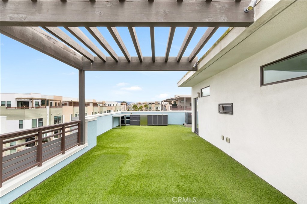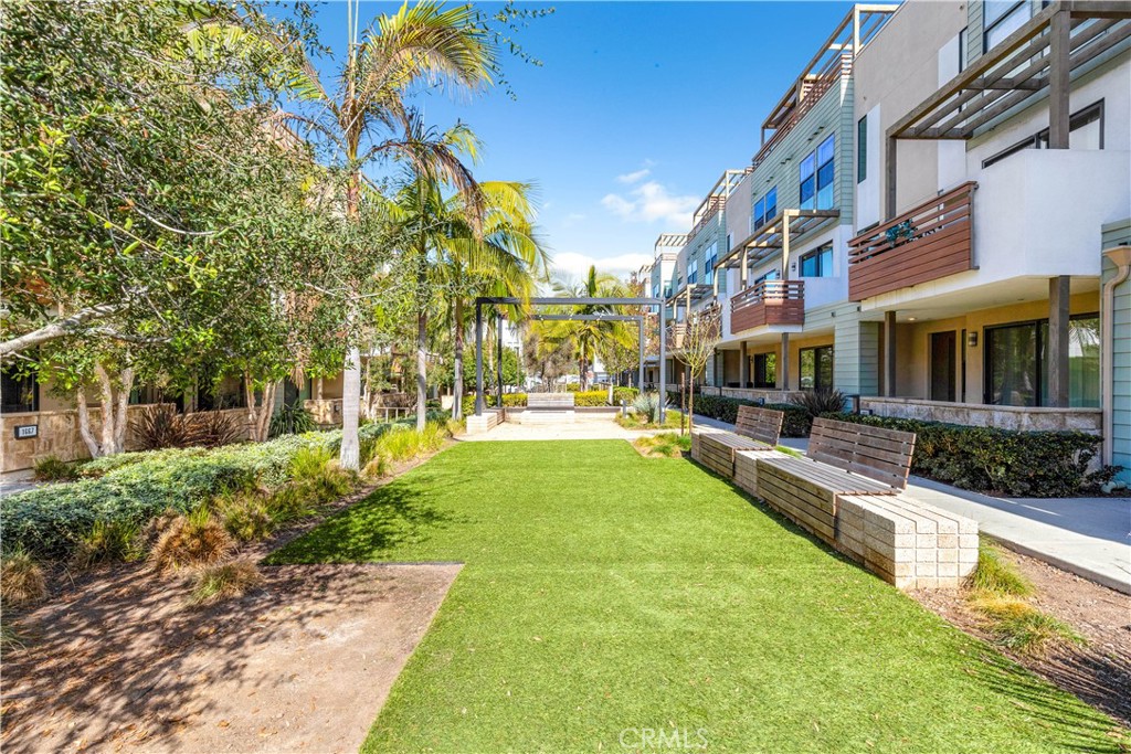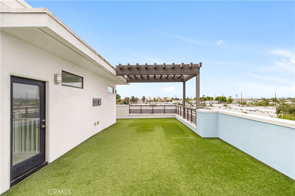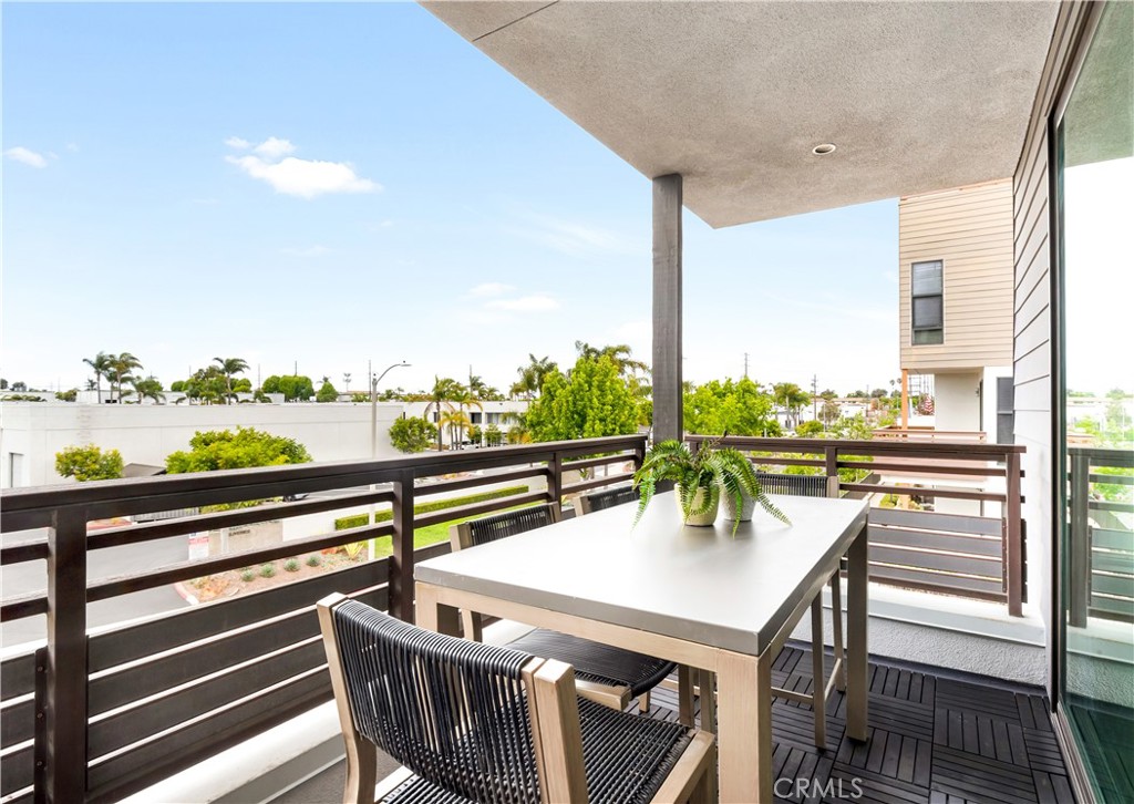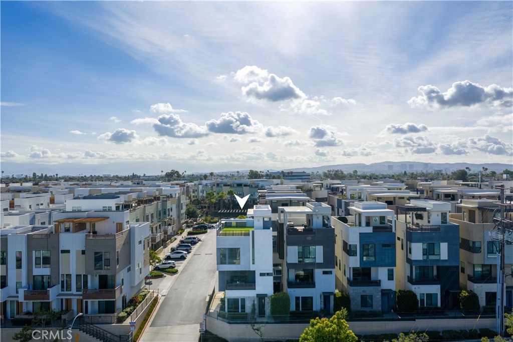 The third level boasts the primary suite with modern ensuite, dual sink bathroom and exceptionally appointed closet. Two additional secondary bedrooms and one full bathroom complete the space. Coastal breezes, sunsets and Southern California sunshine awaits on the massive rooftop deck. Entertain under the wood pergola, relax in the open air or dine al fresco in privacy. Other highlights include fresh interior paint, a two-car garage with EV charging, electric roller shades, LED lighting, and intercom system. Ideally located within walking distance to popular restaurants, Trader Joe's and just a short bike ride to Newport's dazzling beaches. Don't miss your chance to secure this prized property.