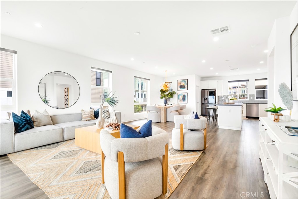 Modern, fresh and luxurious, 1660 Pomona Avenue is a detached end-unit home with a large rooftop deck in the prestigious 17 West Community. Enter to find a generous flex space, with a half bathroom, easily converted to a home gym, office, or an additional bedroom. Ascend upstairs to a grand great room filled with natural light. The sleek kitchen boasts high end appliances, an over-sized quartz island with seating, designer tile backsplash, walk-in pantry and dedicated dining area. Perfect for relaxation or entertaining, the living room seamlessly melds the kitchen and adjacent deck.