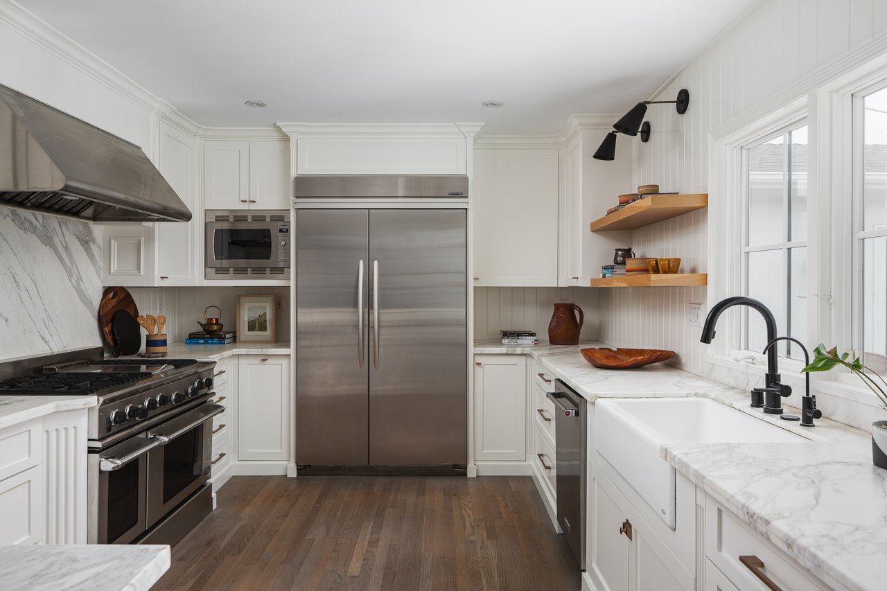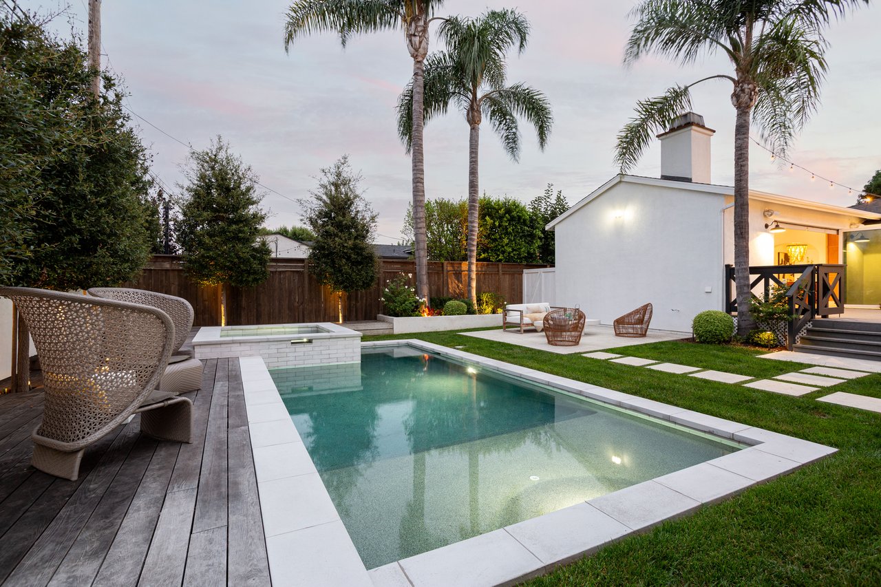 Welcome to 418 Broadway, a timeless escape that seamlessly blends transitional modern style with effortless California living. Situated on one of the most coveted streets in Eastside Costa Mesa, this thoughtfully curated four-bedroom, three-bathroom home is defined by its elevated design, warm functionality, and now, resort-style backyard retreat. Framed by a manicured hedge, the front yard offers a private lawn and patio area, perfect for morning coffee, playtime, or relaxed evenings. Step through the Dutch door into a sun-drenched interior featuring an open floor plan, high-end finishes, and intentional design touches throughout. At the heart of the home, the gourmet kitchen shines with sleek Carrara marble countertops, custom cabinetry, open shelving, peninsula seating, and premium appliances – ideal for everyday living and hosting alike. The expansive family room invites cozy evenings by the fireplace or lively gatherings at the adjacent wraparound wet bar. Just beyond, panoramic sliding doors open to a completely transformed backyard oasis, now featuring a sparkling pool, spa, sun deck, refreshed landscaping, and multiple seating or lounging areas that connect the main living areas for seamless indoor-outdoor entertaining. The formal living and dining rooms offer flexibility for elevated hosting or relaxed lounging, a built-in desk station and indoor laundry room deliver convenience, function and style. The primary suite is a true retreat, featuring dual walk-in closets and a spa-inspired bathroom with a soaking tub, walk-in shower, and double vanity. Three additional bedrooms provide ample space for family, guests, or home office needs. Other highlights include walkability to Mariners Elementary School and Library, shops and dining on 17th Street and parks, plus close to Newport Back Bay and beaches. With its ideal location, resort-style living, and elevated interior design, 418 Broadway offers the best of Eastside living, a turnkey home where style meets substance in every detail.