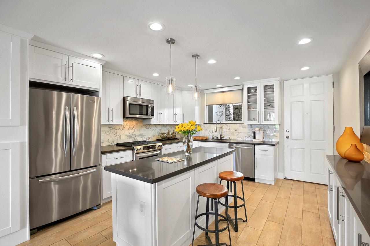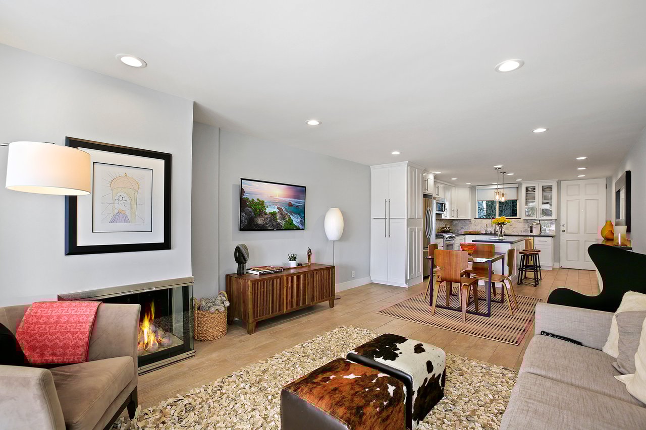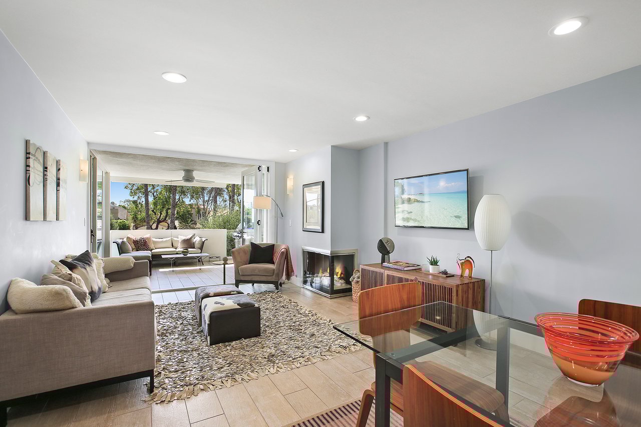 Welcome home to a truly unique property in Corona del Mar, located on the south side of Pacific Coast Highway. This single level, upper unit condo has been completely gutted and remodeled, sparing absolutely no expense for quality and attention to detail. The kitchen boasts stainless steel appliances and top of the line finishes, an island that opens into the great room making this a perfect place for hosting and entertaining. Enter through the new panel accordion doors to a private deck with a mature common area landscaping and ocean breezes which allows for indoor/outdoor living at its finest. This is one of the few two bedroom units in the Palm Springs like feeling community of “Sandcastle” with a private over-sized two-car garage, conveniently located near the home. This community has recently re-roofed the buildings, replaced the gutters, repaved the driveways, refinished the pool and Jacuzzi area, and refinished the elevator that leads you to your front door. Don't miss your opportunity to own this contemporary-traditional abode in close proximity to Corona del Mar’s finest beaches, shops, and restaurants.